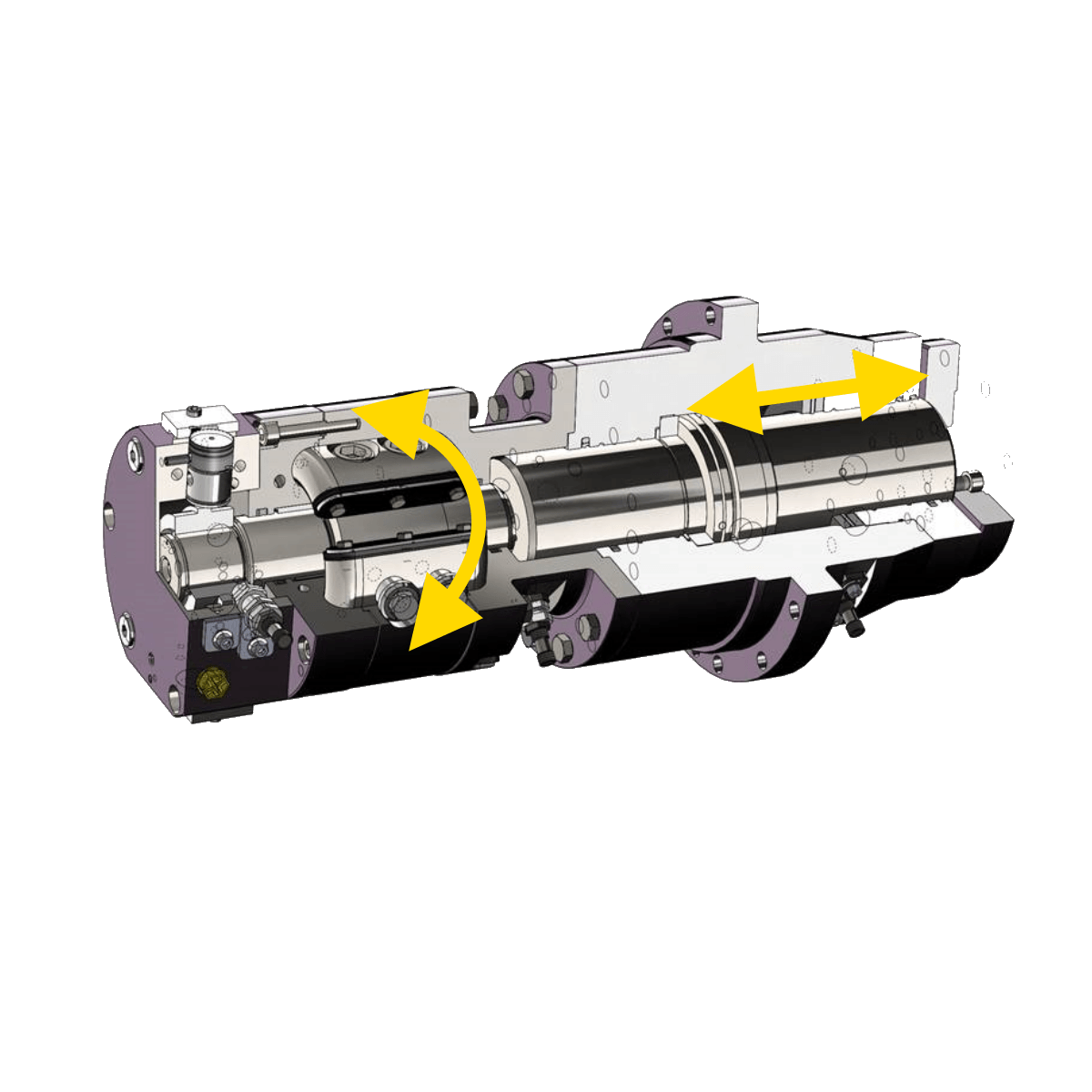 Aus der besonderen Anforderung im Palettenwechsler an Werkzeugmaschinen entstand die Kombination bewährter hydraulischer Schwenkantriebe mit kraftvollen Linearzylindern. Dabei können die Bewegungsabläufe beliebig kombiniert und synchronisiert werden und erfüllen so auch komplexe Aufgabenstellungen präzise und sicher. So vielfältig wie die Aufgabenstellungen sind auch die konstruktiven Möglichkeiten - gerne entwickeln wir passende Lösungen für Ihre Anwendung.